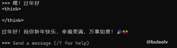 部署好后就可以直接在CMD窗口和DeepSeek对话了,如下随意的测试了一下