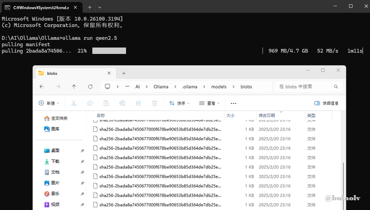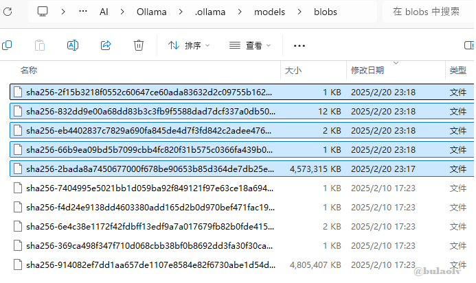 7,下图蓝色是Qwen2.5模型文件(5个),其余的是之前DeepSeek r1的8b模型文件。