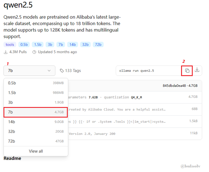 2,由于我的显卡是10gb显存,所以选择步骤1的默认的7b模型,然点击步骤2复制下载链接