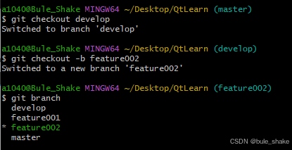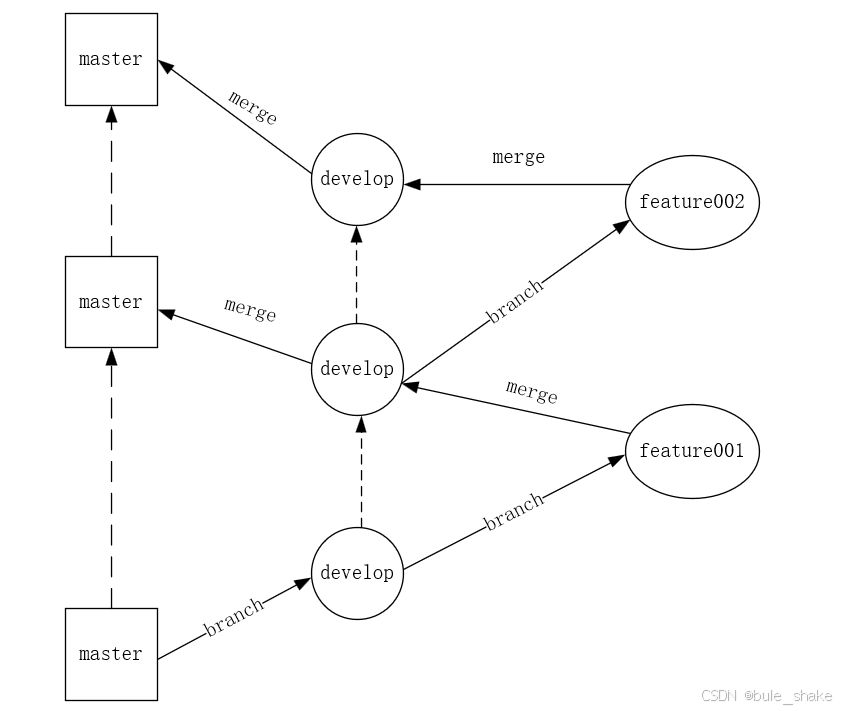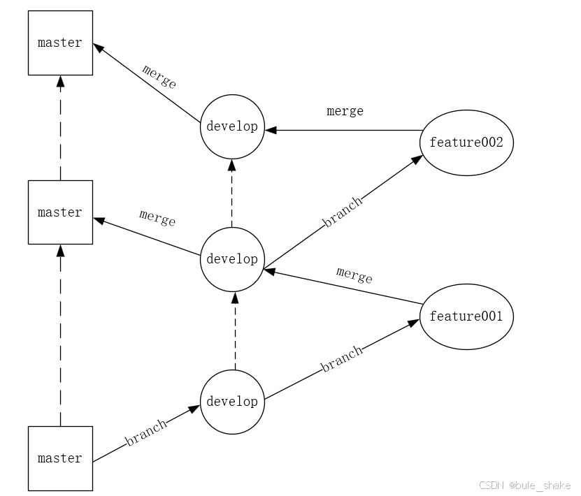 1.分支(branch):开发过程中会有多个分支,比如主分支(master)、开发分支(develop)、功能分支(feature)等等。一般来说不会直接在master上开发,而是从master或者develop分支中再分出来别的分支(例如功能分支等等)来进行开发。