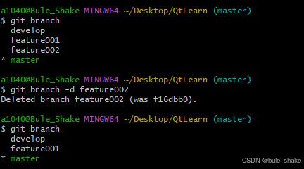 git branch [-d | -D] <分支名> #删除分支,其中-D表示强制删除未合并的分支