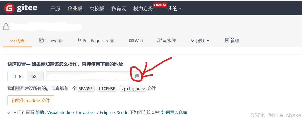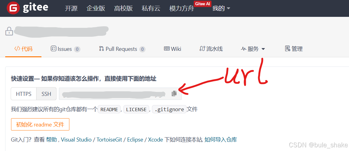 当然你需要先用git remote add <远程仓库名> <远程仓库url>给本地仓库添加远程仓库。这里以gitee举例获取远程仓库url。