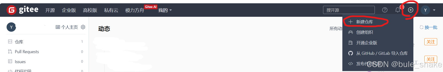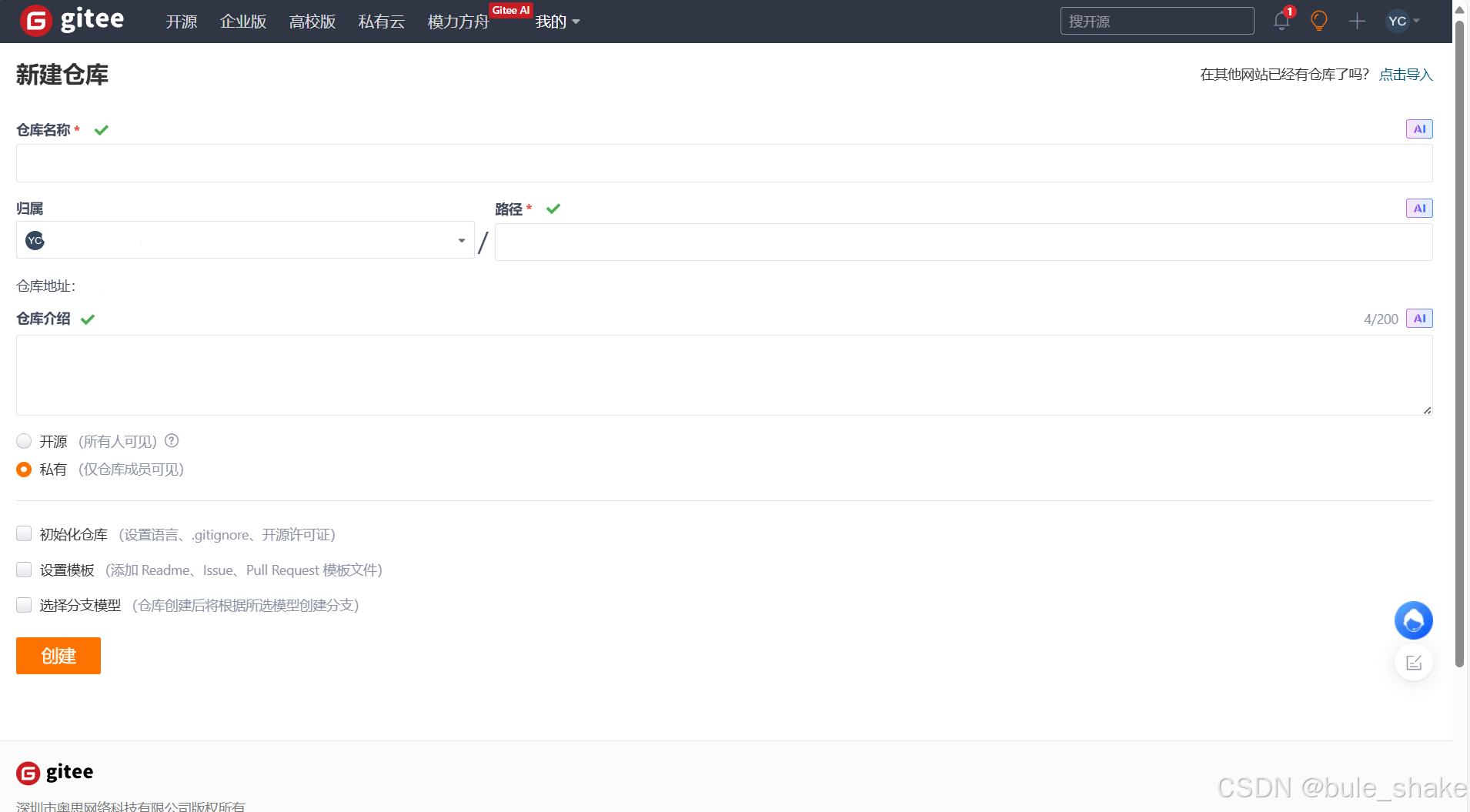 1、打开并登录gitee,并新建自己的仓库。