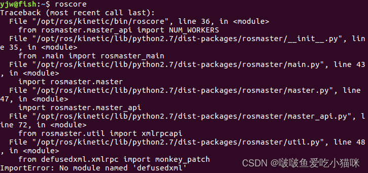 原因是python的版本和ros不对口。盲猜可能是在sudo rosdep init这里采用鱼香ROS的方法,然后安装了python3导致的问题。不过有一说一,sudo rosdep init真的看运气,运气好了直接就能中,运气不好就用鱼香ros的方法吧。