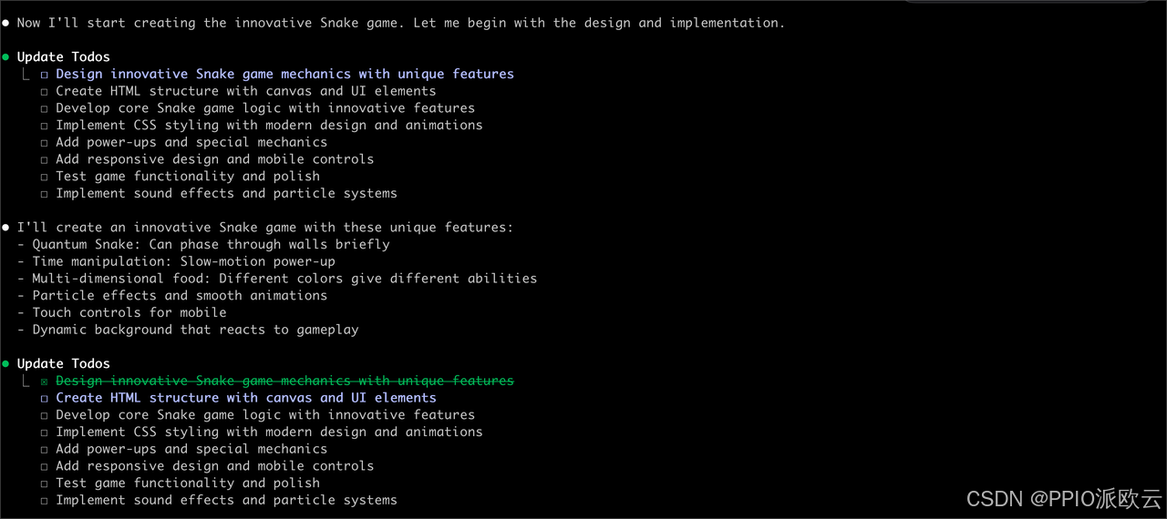 每完成一个任务,Claude Code 会勾选已完成的任务,并规划和说明下一个任务的细节。