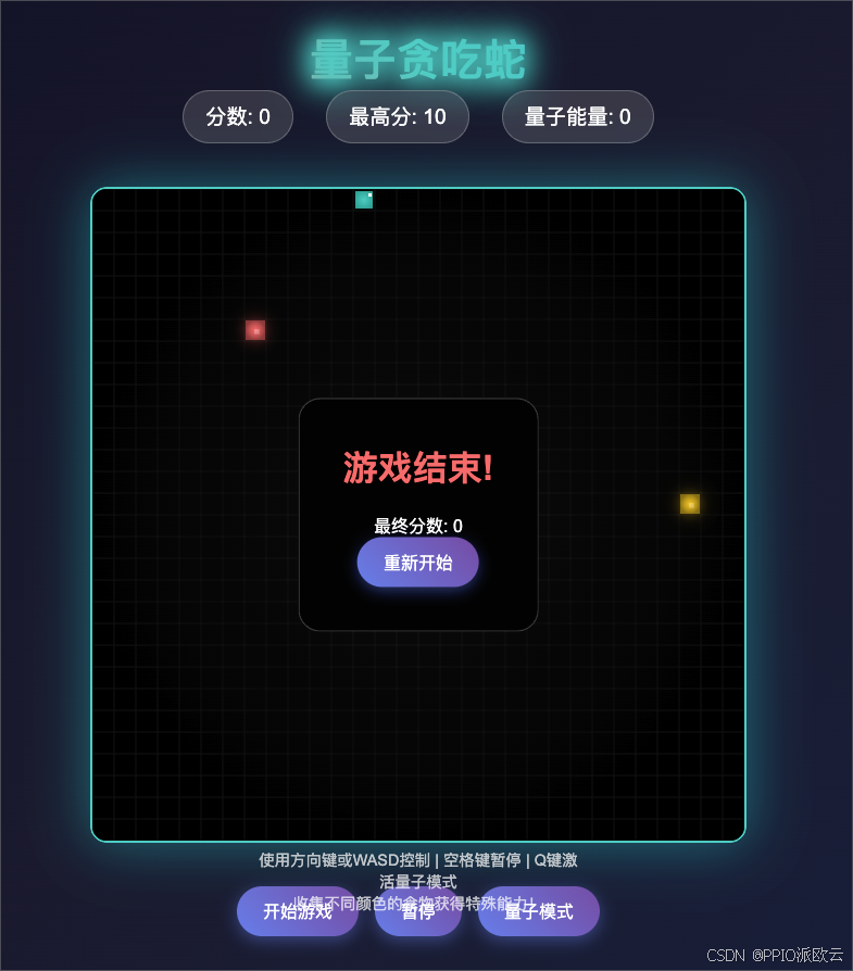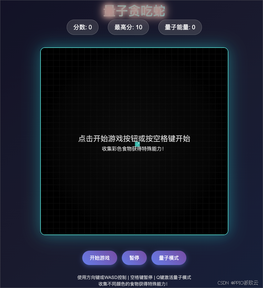此时,您可以在浏览器中打开 quantum-snake.html 文件,并查看游戏效果。