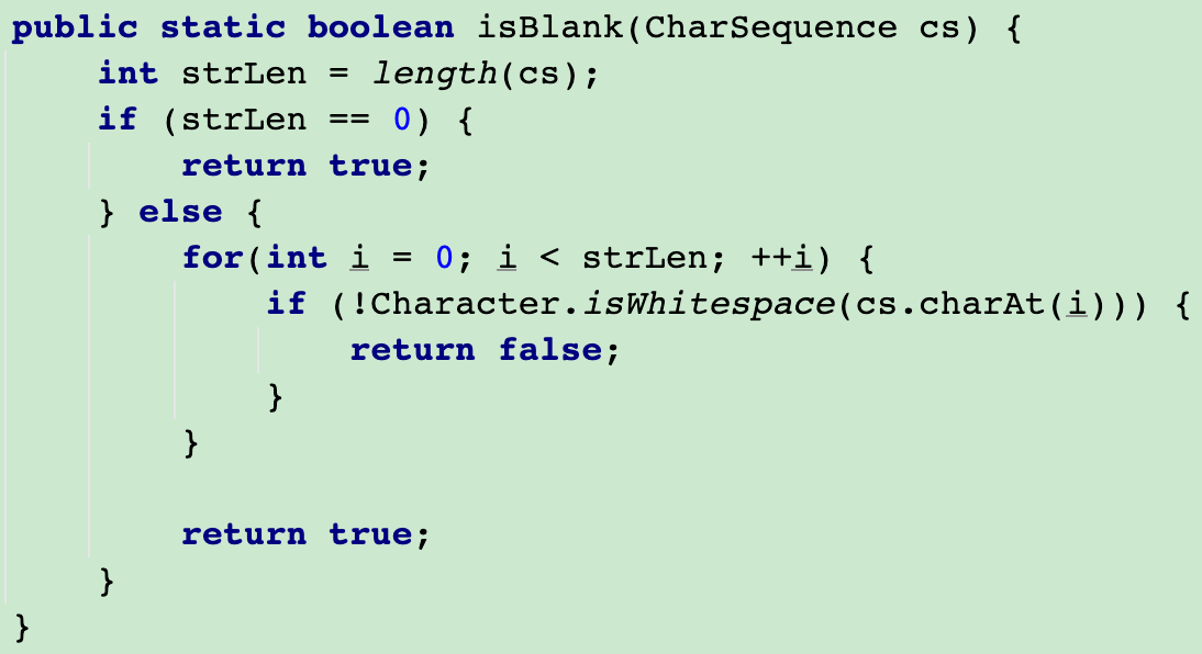 - StringUtils.isBlank(String str):判断字符串为 null 或 由空格组成。