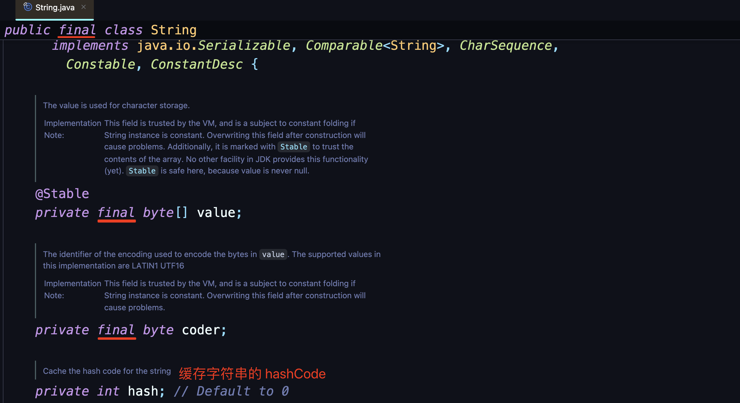 - String 的哈希值(hashCode())在第一次计算后会被缓存。