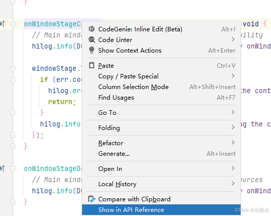 在编辑代码过程中,当遇到不熟悉的API接口或组件时,DevEco Studio能让我们快速查阅相关参考文档。当API/组件被高亮显示时,编辑器会迅速显示对应的参考文档链接,我们只需单击就能查阅详细内容。此外,对于带有`decorate`和`obsolete`标识的API,也有相应的显示和关注方式,方便我们及时了解API的状态和使用注意事项。