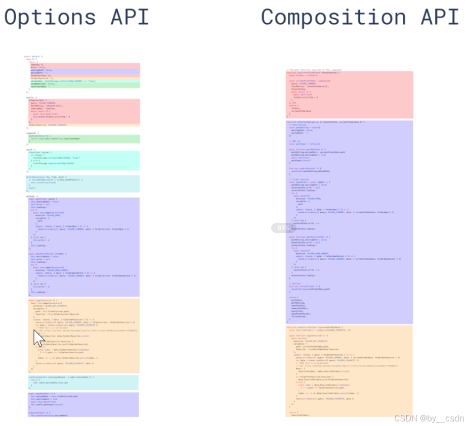 参照 vue3官方文档对于 Composition Api的理解: 更灵活的代码组织 ,组合式Api,即 Composition API 解决的是让 相互关联的代码在一起,以更方便的组织代码,故代码格式如下: