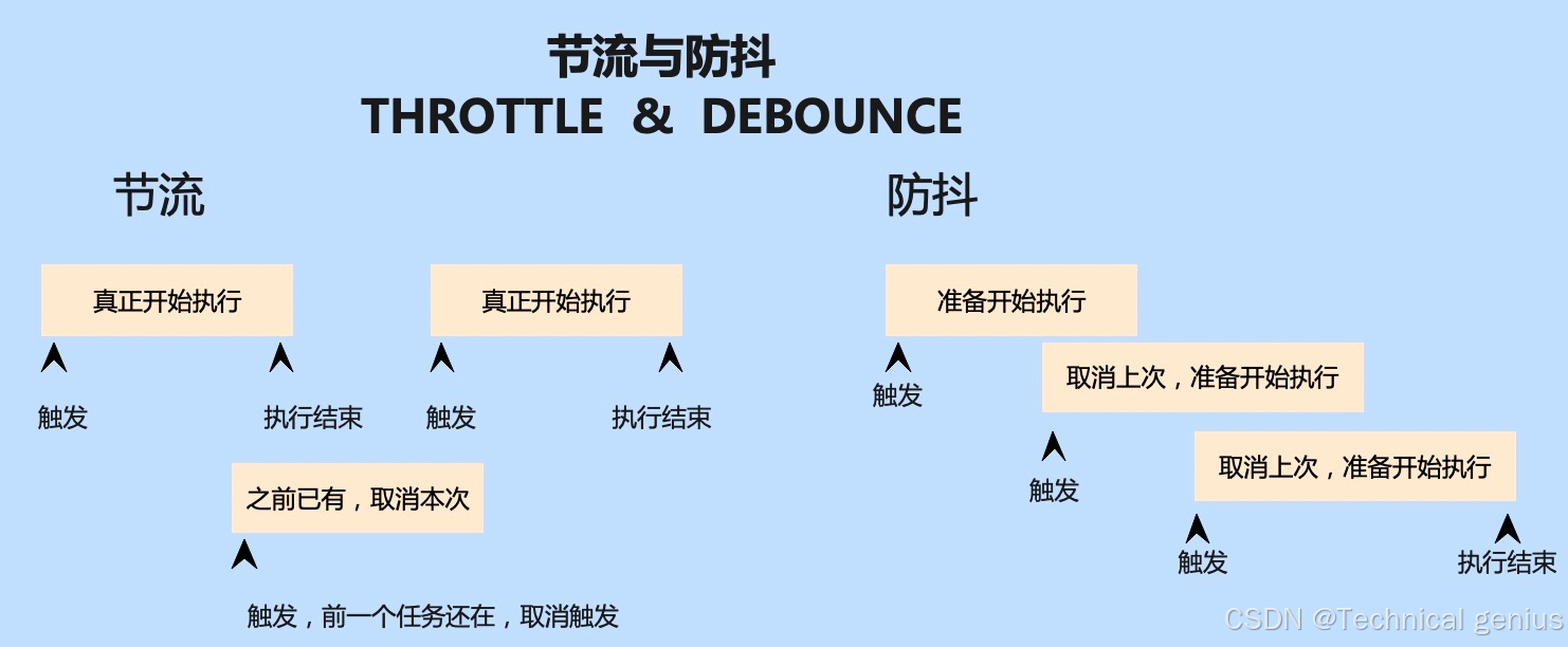 在Web开发中,我们经常需要处理高频触发的事件(如resize、scroll、mousemove、input等)。如果每次事件触发都立即执行函数,会导致以下问题: