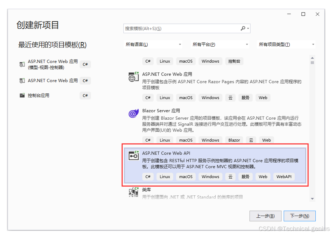 ASP.NET Core WebAPI基于REST风格,搭建在HTTP协议之上,本质上是一种HTTP服务,它支持使用控制器,不需要编写前端页面,前后端完全分离,它只关注返回数据;而ASP.NET Core MVC大部分需要返回前端页面,是一套完整的Web框架。因此,在开发项目时,如果需要前后端分离开发,或者需要与手机APP、微信小程序以及其他应用程序进行交互,则应该使用ASP.NET Core WebAPI。