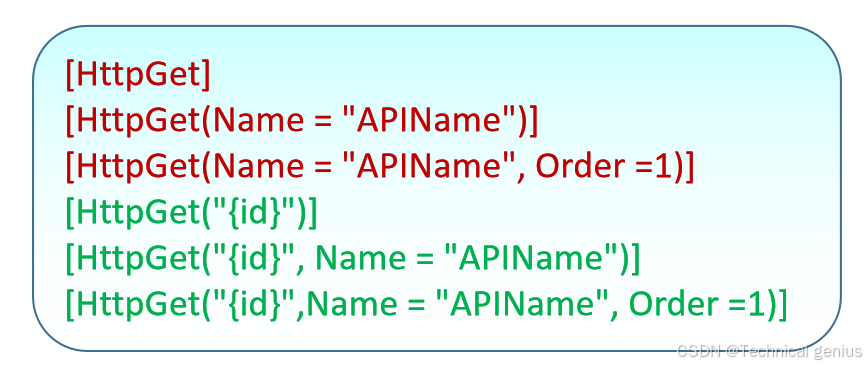 使用[HttpGet]属性修饰接口方法,表示该接口方法用来处理GET请求。[HttpGet]是WebAPI中的一种HTTP方法,用于从Web应用程序中获取数据,它通常用于从服务器检索数据,并将其返回给客户端。在[HttpGet]请求中,数据通常以JSON或XML格式返回。[HttpGet]属性实质上是指Microsoft.AspNetCore.Mvc命名空间下的HttpGetAttribute类,其作用于API接口方法时,有两种形式,分别如下: