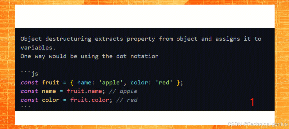 :重命名解构变量:const { name: userName } = { name: "Alice" }; console.log(userName); // Alice
