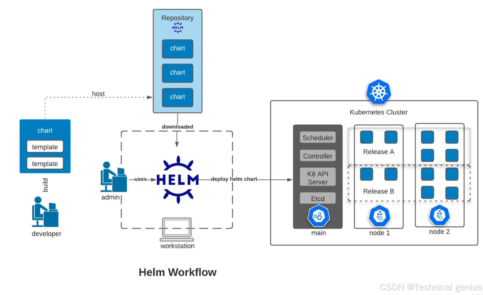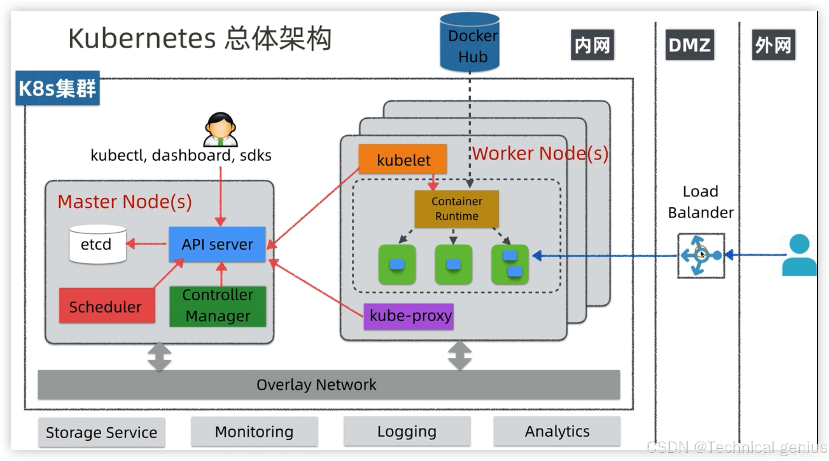 K8s采用主从架构(Master-Node架构),分为控制平面(Control Plane)和工作节点(Worker Node):