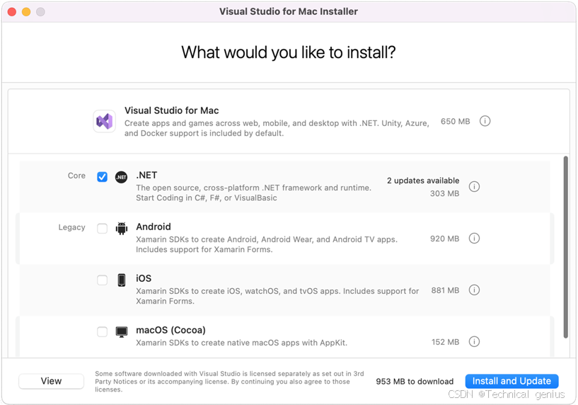 | 跨平台Unity游戏开发 | 除了默认的“Visual Studio for Mac”,不选择其他任何内容 | 需要安装Unity扩展 | |