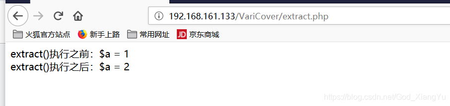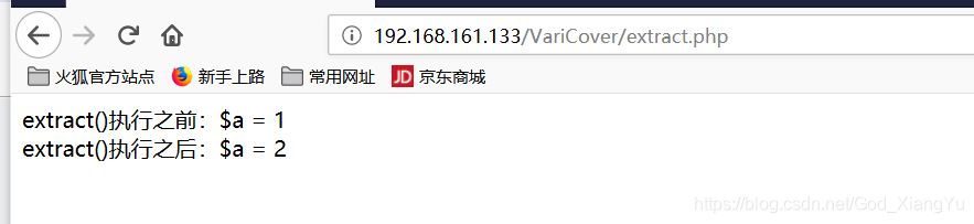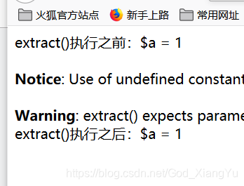 可以看到extract()函数执行之后,将变量$a的值覆盖