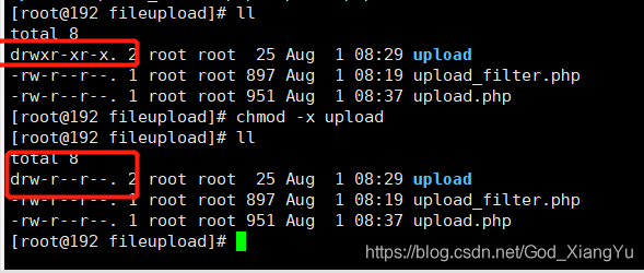 注意:这里需要先给upload文件分配权限(命令:chmod 755 upload)