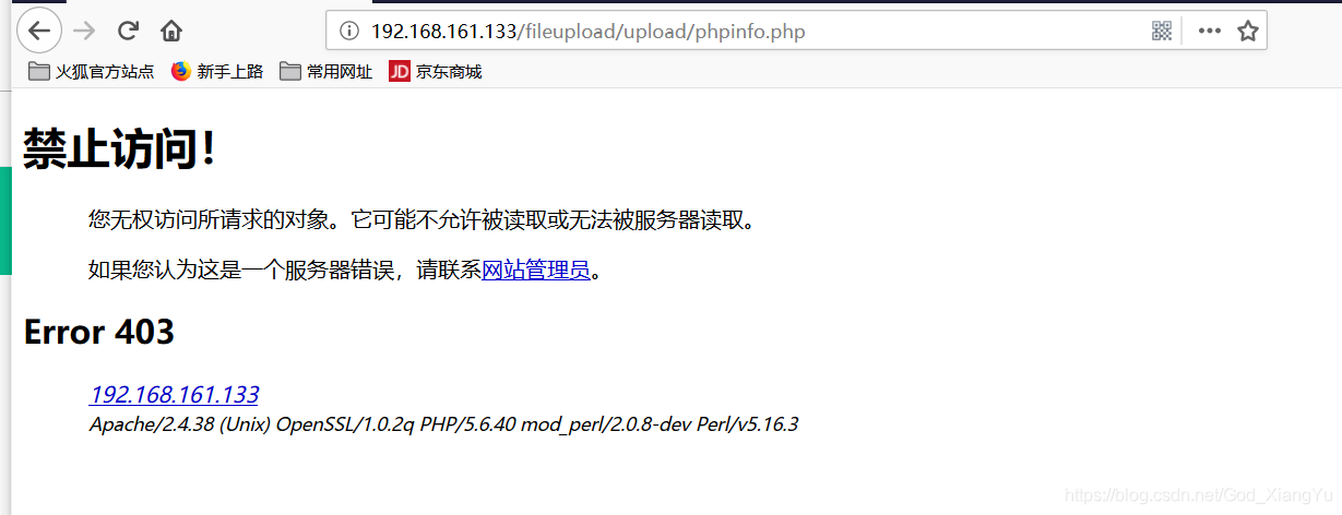 将upload目录设置为不可执行,再尝试加载之前上传的phpinfo.php: