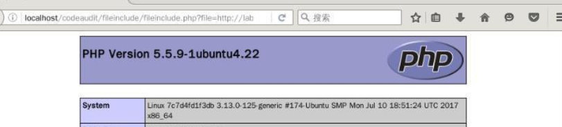 本地文件包含依然存在。 再输入?file=http://labfile.oss.aliyuncs.com/courses/895/info.txt: