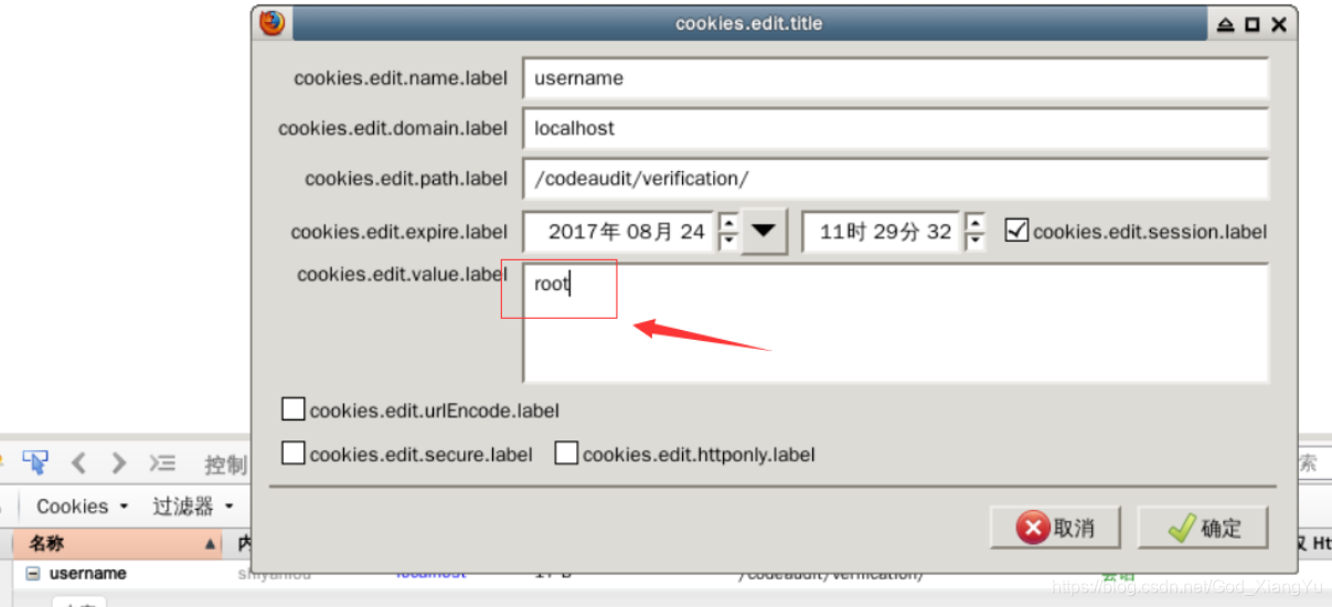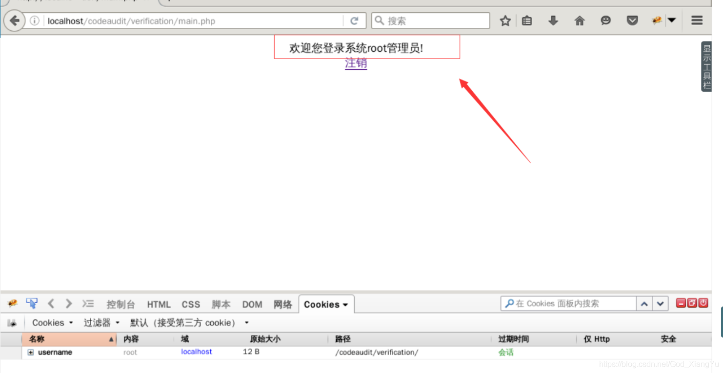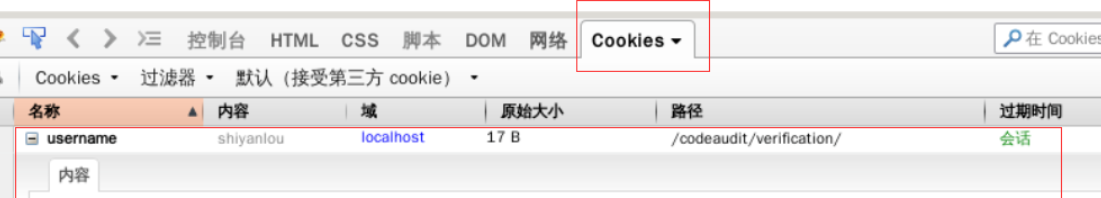 在调用cookie中的值之前,会先使用session对其中的值进行判断,确保未被恶意修改。 在firefox中输入url:localhost/codeaudit/verification/modify/login.html,任然使用shiyanlou账号进行登录: