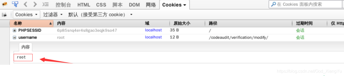 从上述代码中看到,该页面直接读取cookie中的username字段进行的权限判断,这种方式非常不安全
