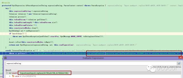 在解析SpEL表达式的时候注入表达式变成了"aaa".replace('a','b')