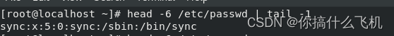 - 查看/etc/passwd文件的第6行 命令head -6 /etc/passwd | tail -1