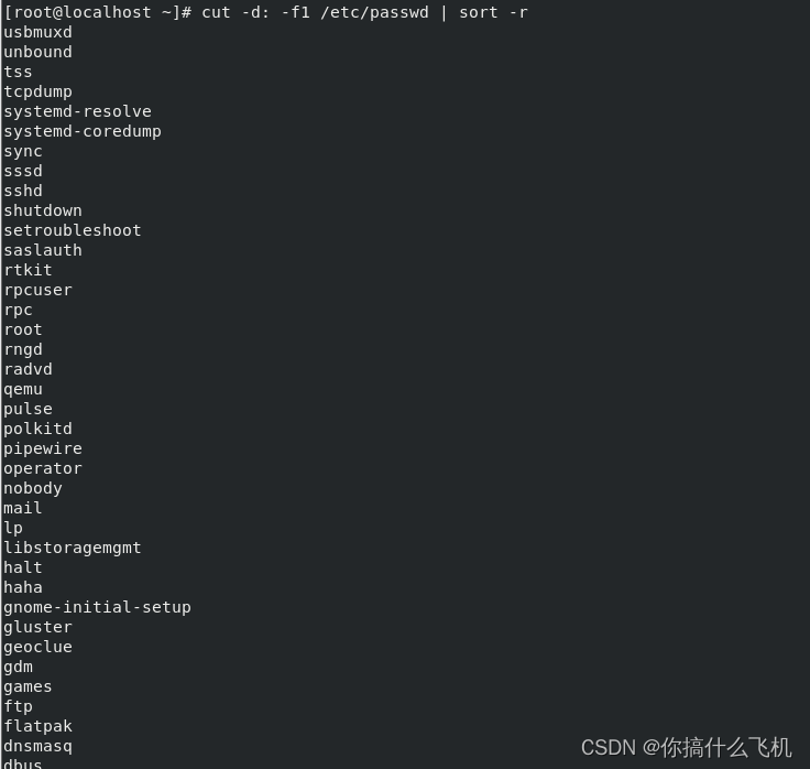 命令 cut -d: -f1 /etc/passwd | sort -r