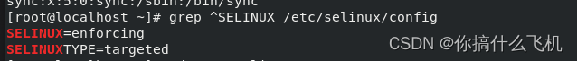 2.查看/etc/selinux/config 以 SELINUX开头的行 命令grep ^SELINUX /etc/selinux/config