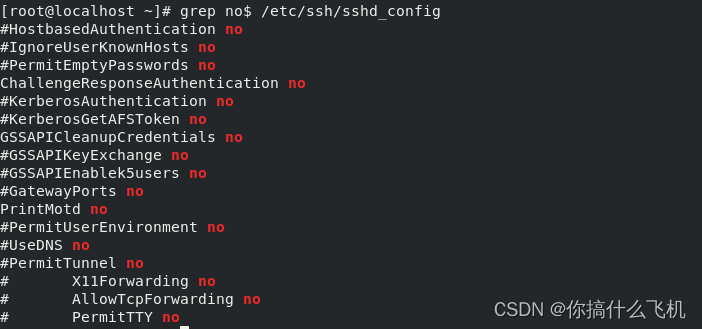 3.查找/etc/ssh/sshd_config 以no结尾的行 命令grep no$ /etc/ssh/sshd_config