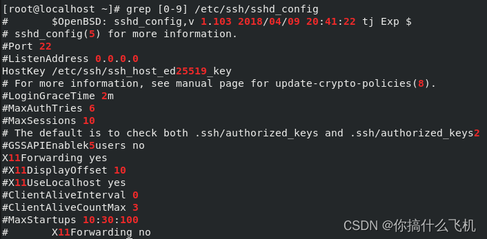4.过滤/etc/ssh/sshd_config 包含数字的行 命令 grep [0-9] /etc/ssh/sshd_config