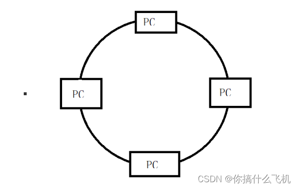 - 环形: 由节点与节点链接的线路组成一个闭合的环