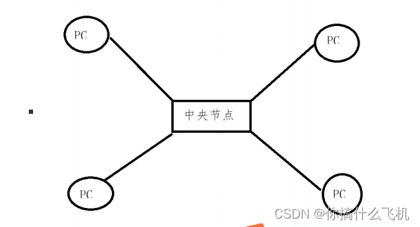 - 星型: 由中央节点和通过链路与中央节点相连的节点组成