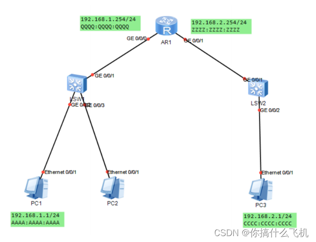 - 通过判断PC3IP地址确定为跨广播域传输 需要获取AR1的Mac地址