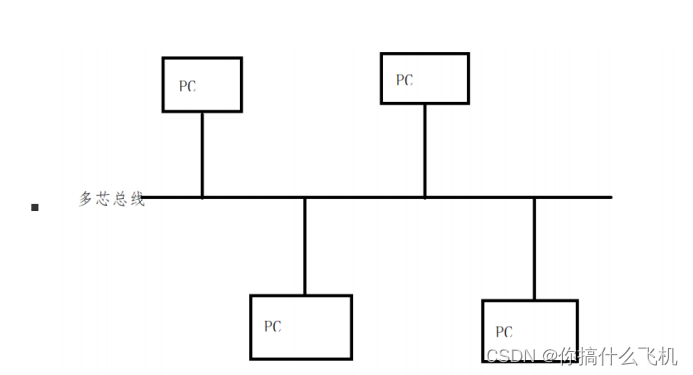 - 总线型:由一条多芯的线缆向四周延伸,链接各个节点