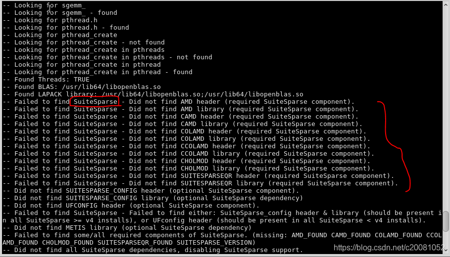 我在安装时提示已经安装过了,在未安装 suitesparse-devel 这个库时去直接cmake ceres依旧提示无法找到suitesparse 的那些库和头文件,然而实际上我在/usr/lib64中找到了所需的so文件了,cmake竟然没有在这个目录下找到。