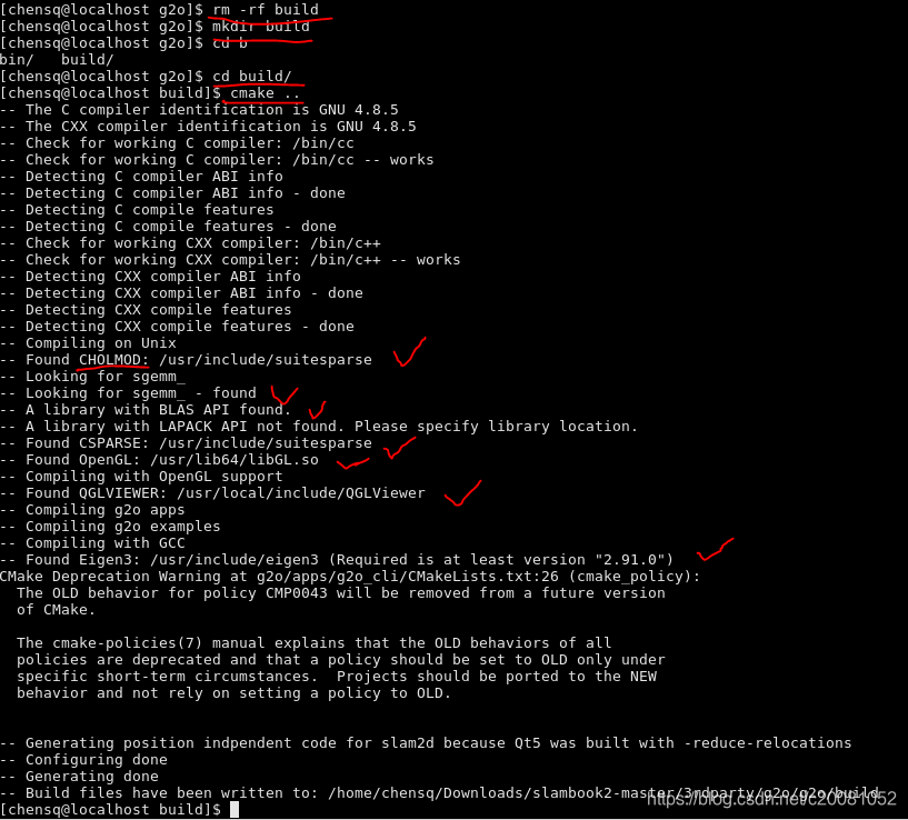 我这里暂且不管LAPACK,然后重新编译g2o: