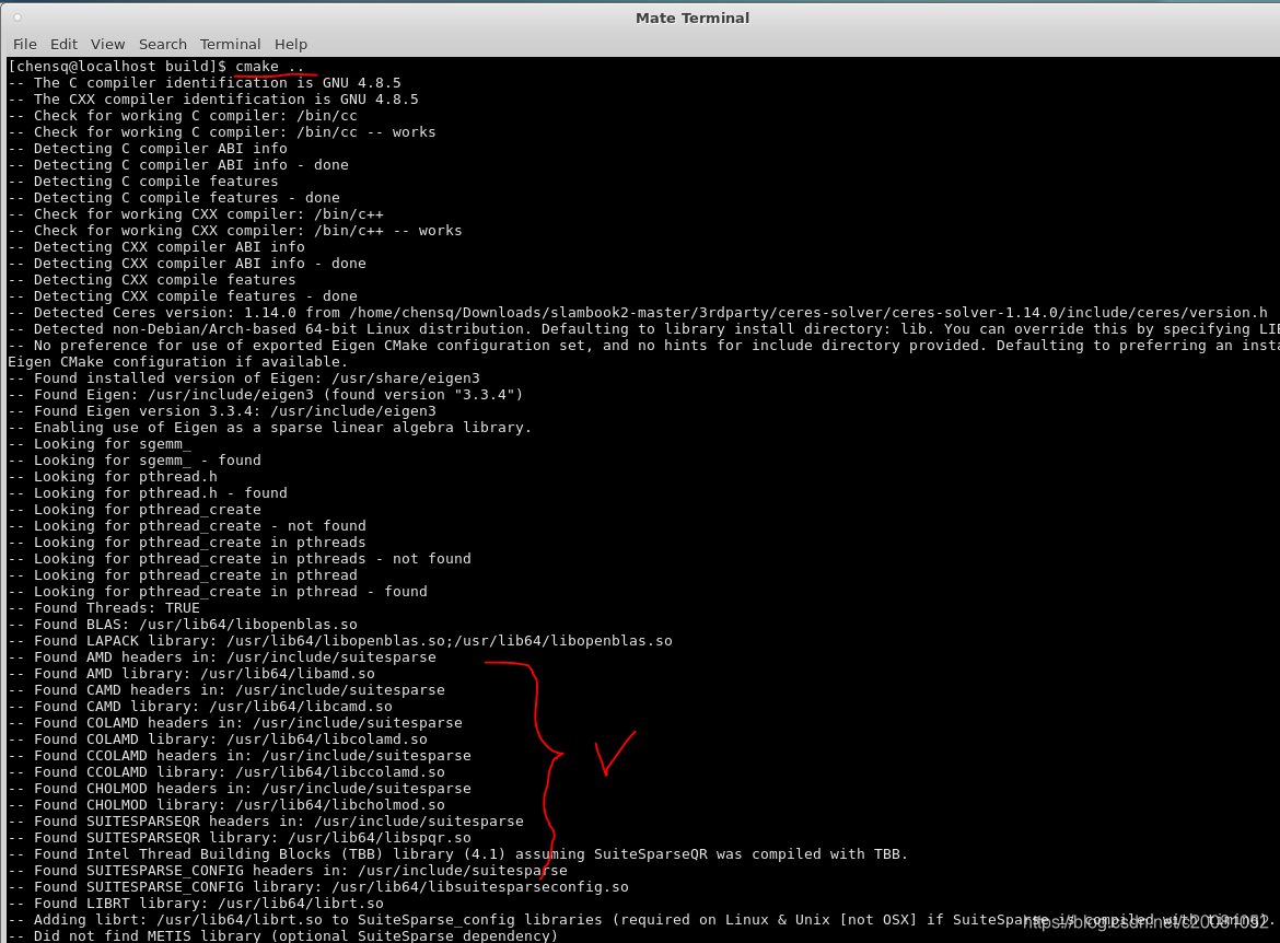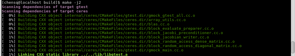 你会发现在centos下装了suitesparse-devel后很多依赖的头文件和库文件都找到了(包括CXSparse),然后接下来就是安装ceres:(这个指令适用于ubuntu和centos)
