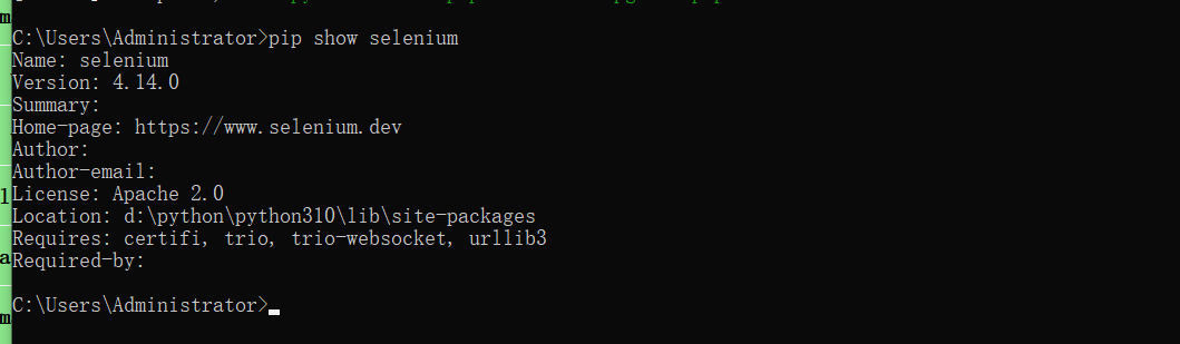 如何确认selenium安装完成:可以通过pip show selenium进行查看