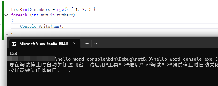 Console.Write($"{item} "); // 结果:0 1 2 3 4 5 6 7 8 9