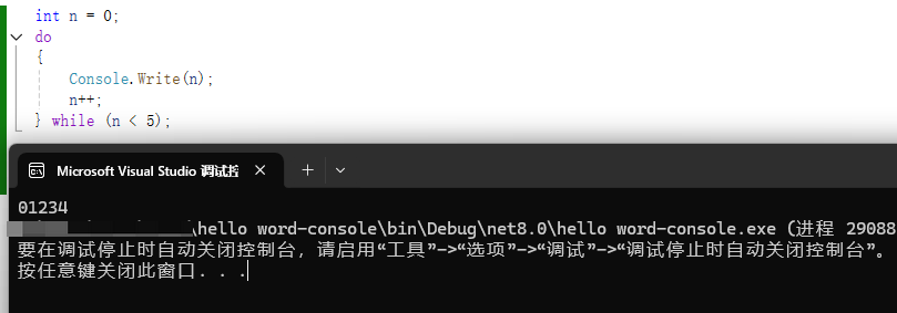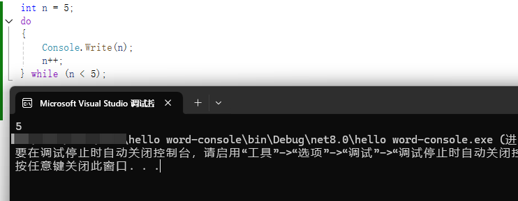 - 特点:先执行循环体,然后检查条件(条件为真则继续循环)。