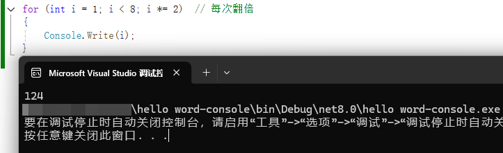 for (int i = 1; i < 8; i *= 2) // 每次翻倍