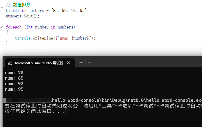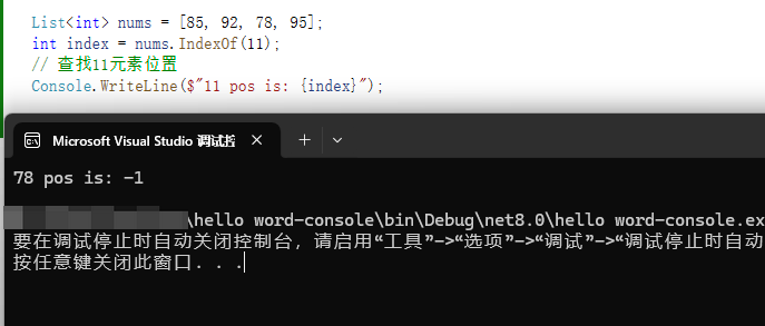 Console.WriteLine($"95 is: {exists}");//结果:True