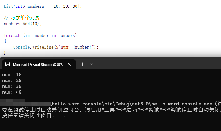numbers.Add(40); //添加后[10, 20, 30, 40]