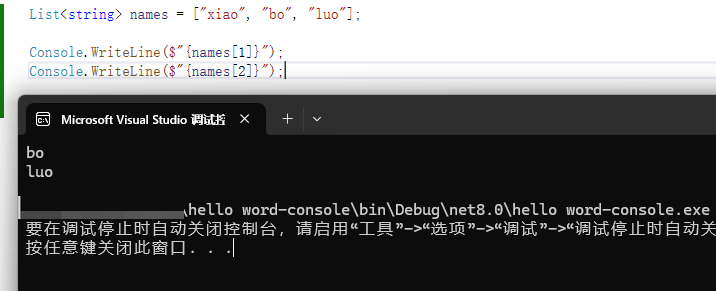 Console.WriteLine($"{names[1]}");