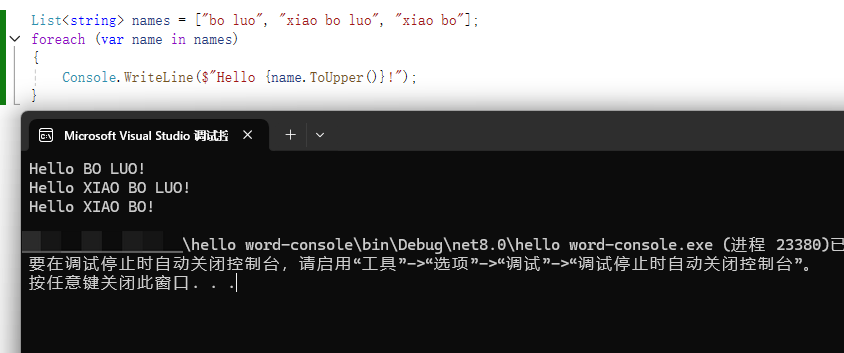 在打印名称的时候,调用ToUpper()的方法,将它们替换为大写字母。