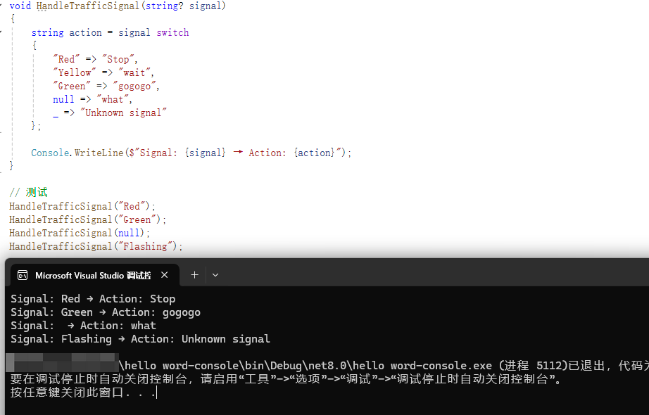 void HandleTrafficSignal(string? signal)