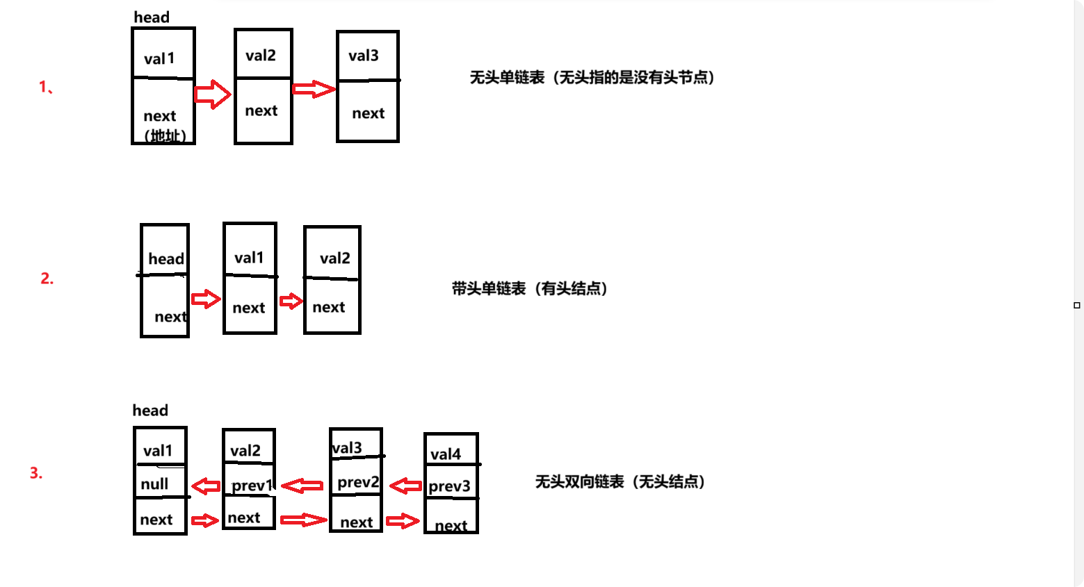 1处中val1头上写head只是为了表示val1这个元素与下一个元素地址next作为头结点,并没有像2处申请一个内存专门存放链表第一个元素的地址,故称无头,2处则为带头单链表。通过上面的图你可以发现单链表可以通过当前结点找到下一个结点,甚至可以从头找到尾,但是他有一个缺点是只能单向查找,即不能从当前结点往前查找,想知道咋解决的?我们先把单链表创建给学会说。