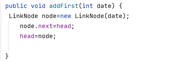 5.头插函数,思路:传入值创建新节点,把新节点的下一个引用指向头节点,移动头节点的引用到新节点,新节点继续作为头结点。如图: